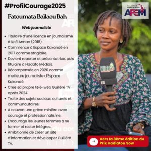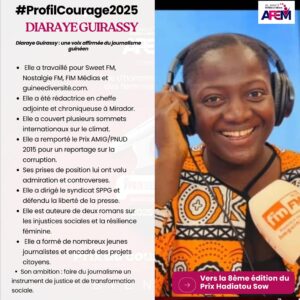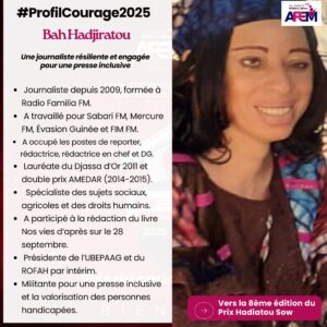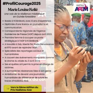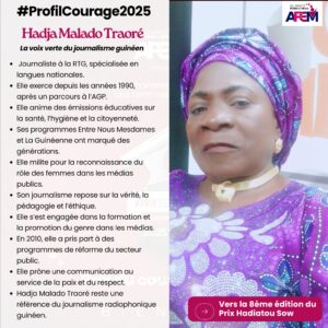 Placée sous le thème « Hommage au courage des femmes de médias : informer, résister, exister », cette édition a mis en lumière 100 profils de femmes issues de divers métiers — journalistes, techniciennes, productrices, communicantes — et a distingué 10 lauréates du Prix du Courage 2025, symbole de la victoire collective de toutes les femmes de médias de Guinée.
